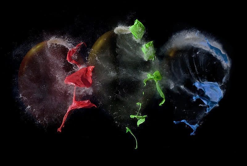 And we finish here with the winning image. Dan you are totally insane, again, one of the pre-requisites for really getting on in the MBP community, but in addition, you are awesome! The resulting image is amazing of course, with the red, green and blue balloons bursting with that bit of water spraying out. The timing is perfect! The amount of work you put into this is simply stunning, as are the results.