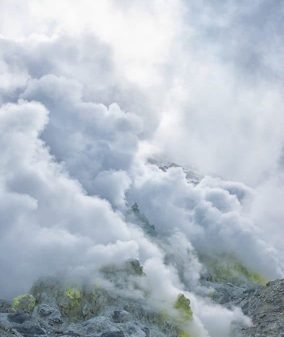 Sulphuric steam pours out of the volcanic vents at Iouzan (Sulphur Mountain).