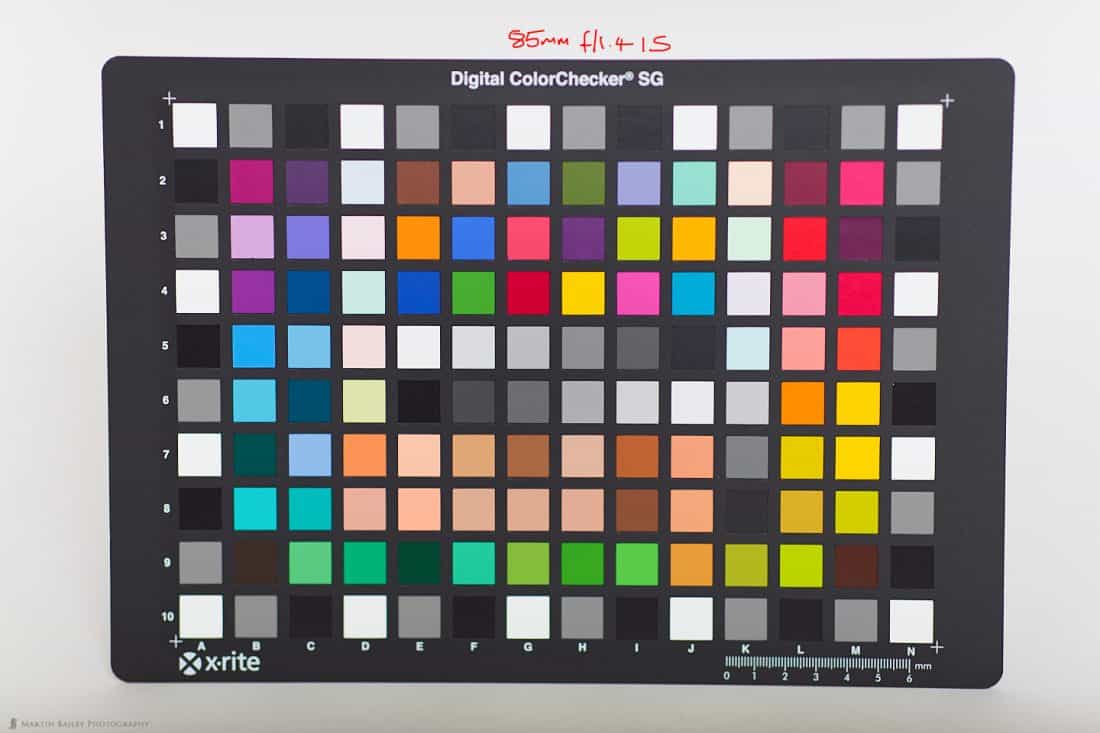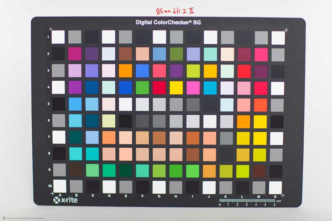 I shot the X-Rite Digital ColorChecker SG card with both lenses as well, and so that we can continue to get an idea of the difference in the lenses wide open, I set both lenses to f/1.4, and as with the previous photos of the open book, I was using a studio strobe to light the target, so the light source was the same for both images. You should be able to see a handle in the middle of the image (on the blog) that you can drag from side to side to check the difference between the two images. I have turned on the Light Falloff correction for these two images too, so that you can see how much difference that makes. You’ll probably be able to tell that the f/1.4 lens is still very slightly darker, but there is no real difference between the color with either lens.