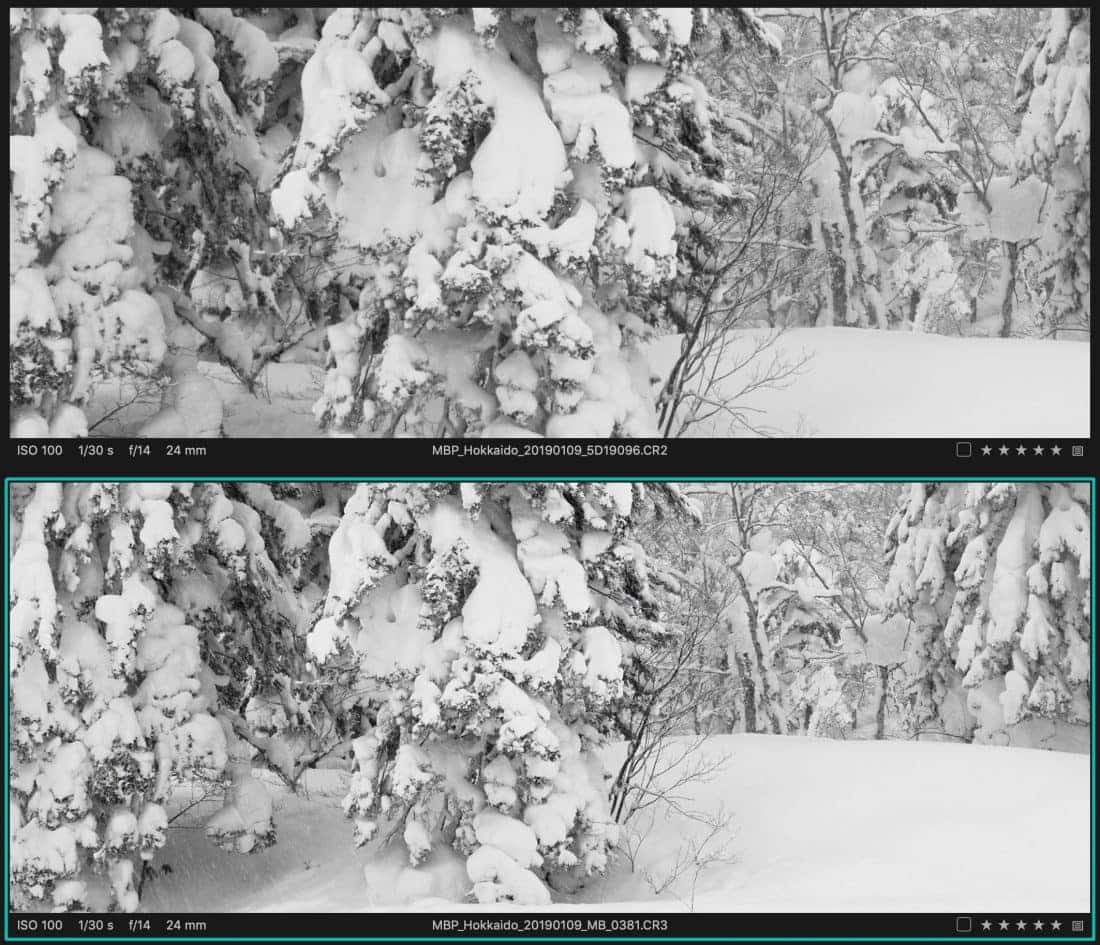 In fact, as a bit of a sneak preview, here is a screenshot of both the 5Ds R and the EOS R versions of the same photograph, both zoomed in to 100% so that you can see the difference between the two camera’s image quality. The 5Ds R shot is on the top and the EOS R shot is on the bottom.