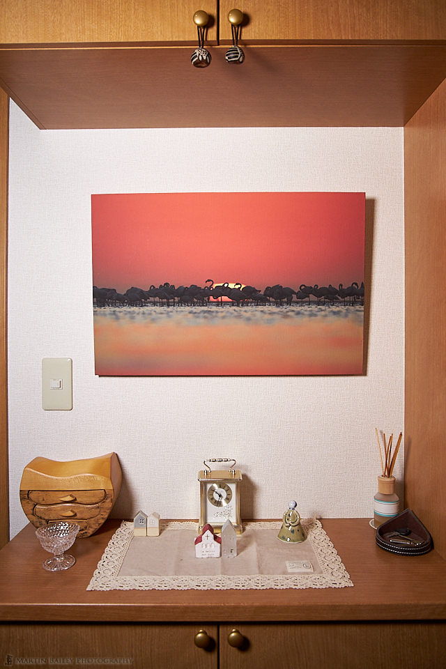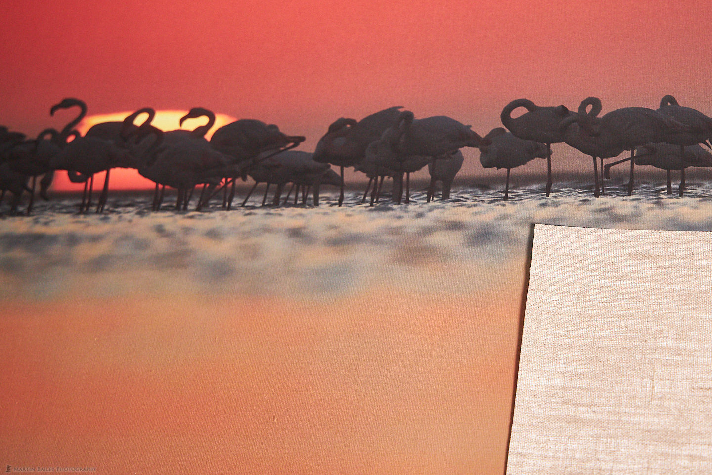 Let’s finish with a word about print rotation. As I am not allowed to hang my prints anywhere in our apartment outside of my studio without my wife’s permission, we decided on this photograph together. Although I was disappointed that I didn’t get a flamingo head poking up into the sun on this year’s Complete Namibia Tour, I still really like the warmth and atmosphere of this photo, and it became a firm favorite of my wife’s too as soon as I got home.