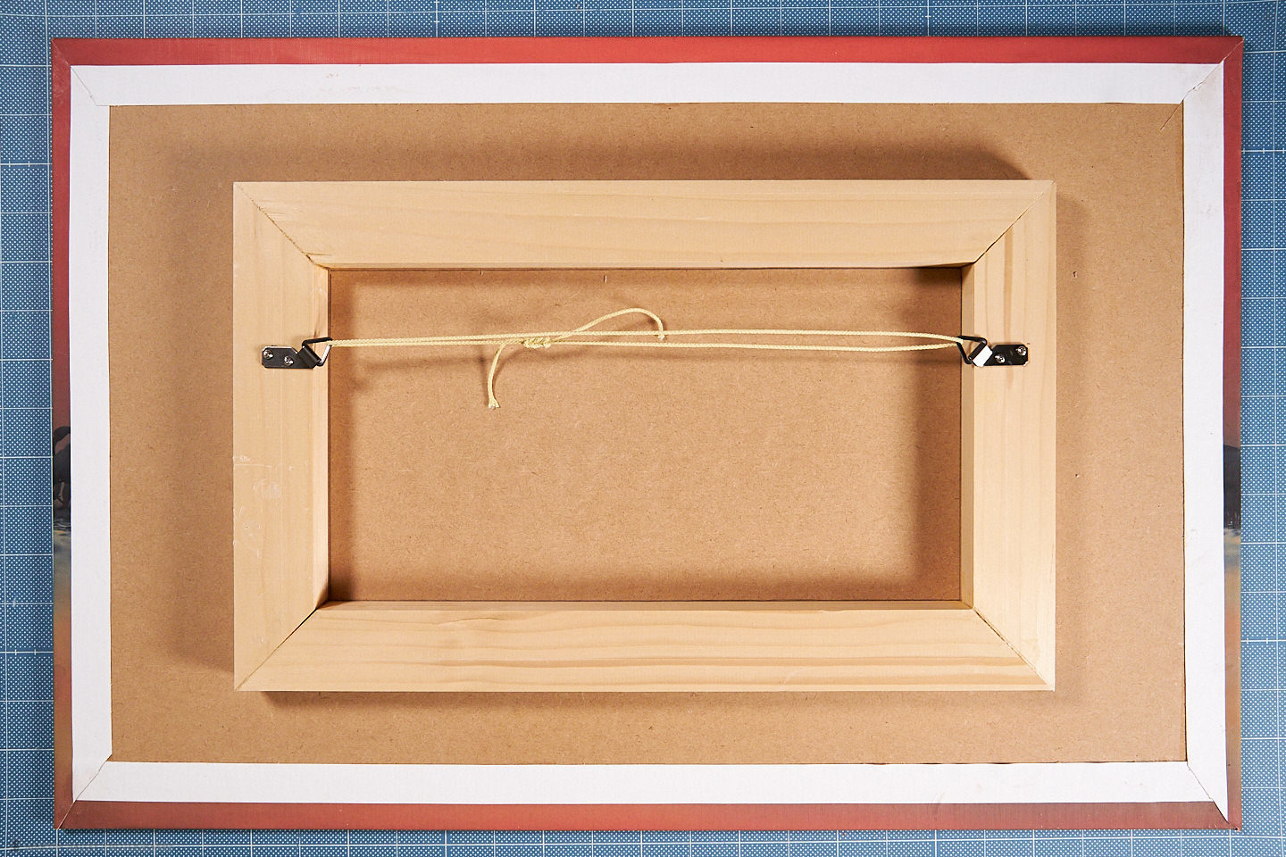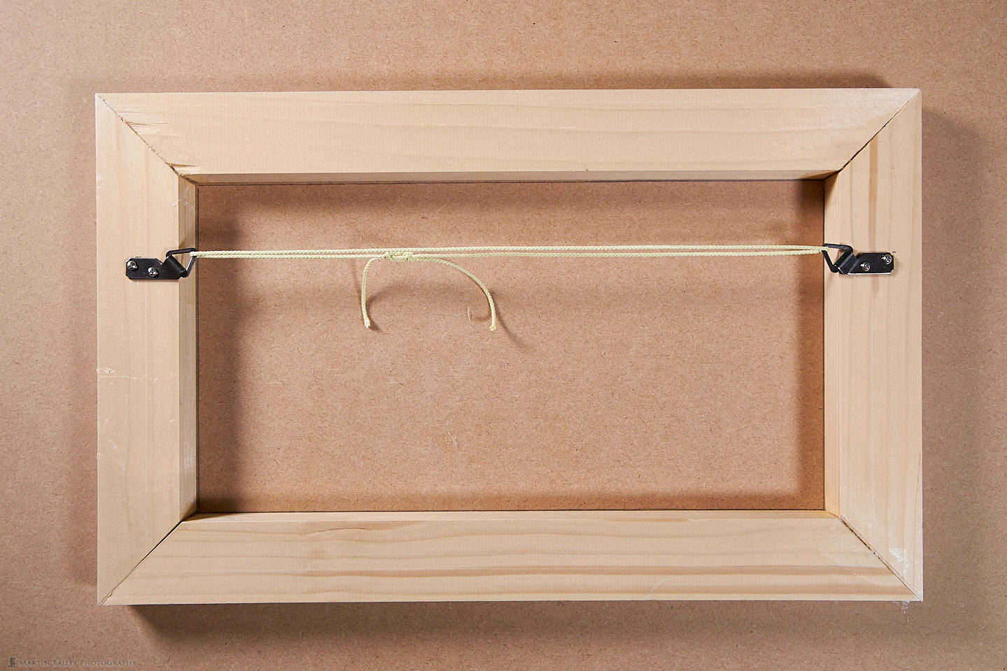 I then use some small, hinged brackets from the framing store to attach some string to the back of the frame so that I can hang it on the wall. Now we’re ready to move on to the printing.