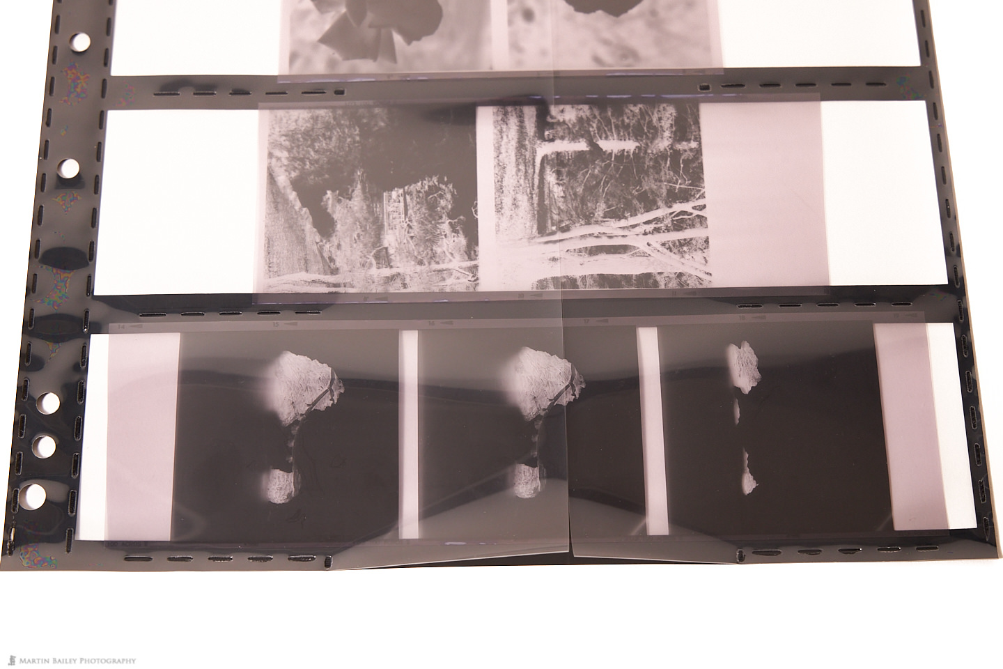 You’ll also note that the corner of my circular ND filter was showing in the top right corner of these images. I have since found a place that does custom made filters that should fit the Rolleiflex, but for a recent trip to photograph the rocks that you see in this screenshot, I had simply taped an ND to my lens hood, and because you don’t look through the shooting lens on a Twin Lens Reflex camera, I didn’t notice until after I’d shot these three images. I corrected this and continued to reshoot the rocks using an ISO 25 film from Rollei, but unfortunately, it looks like I got a bad batch. All of the images I shot on the following roll had a really strong mottling, almost like a leopard fur pattern. I ran more tests when I got home and found it to be that particular film, which was disappointing. Anyway, a bit of deftly cloning was enough to get rid of the filter ring in the corner, so I still came away with the photos I was looking for.