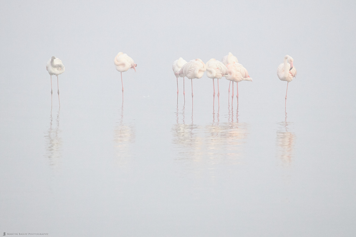 That’s also what I like about the next image, shot three months or so later, in Walvis Bay in Namibia, during my Complete Namibia Tour. We were treated with a beautiful morning mist that I’d expected to burn off quite quickly but which actually hung around for over an hour. The very pale pink of the flamingoes against the mist and water in this highly diffused morning sunlight was lovely to watch and photograph.