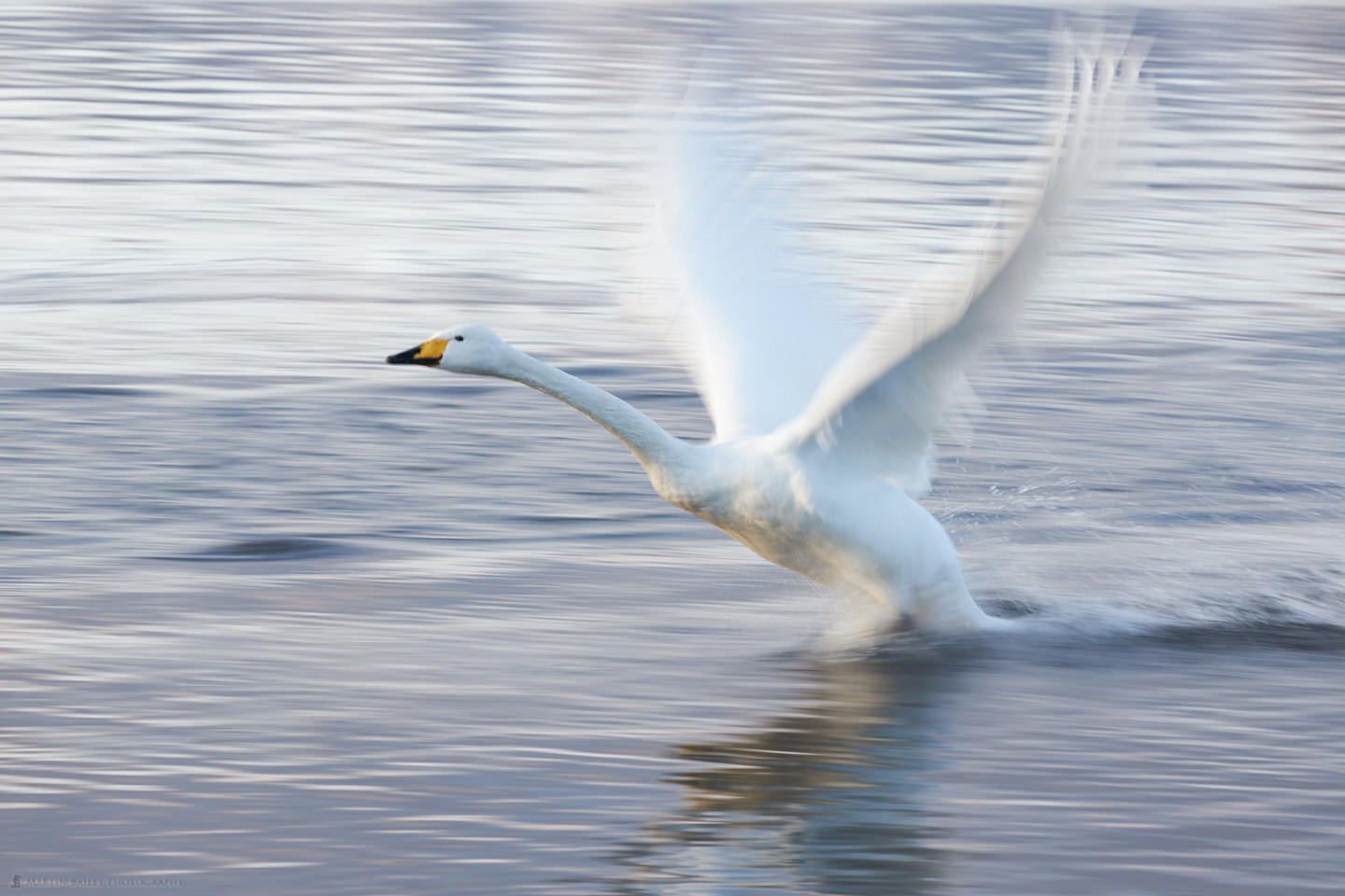 We also did our usual panning, with a 1/50 of a second shutter speed to capture the movement in the wings of these beautiful birds as they take off from the lake. This image is one of my favorites from Tour #1. The head is slightly soft, but I love the look of the wings in this shot, and the wake in the water as the swan runs through it really appeals to me.