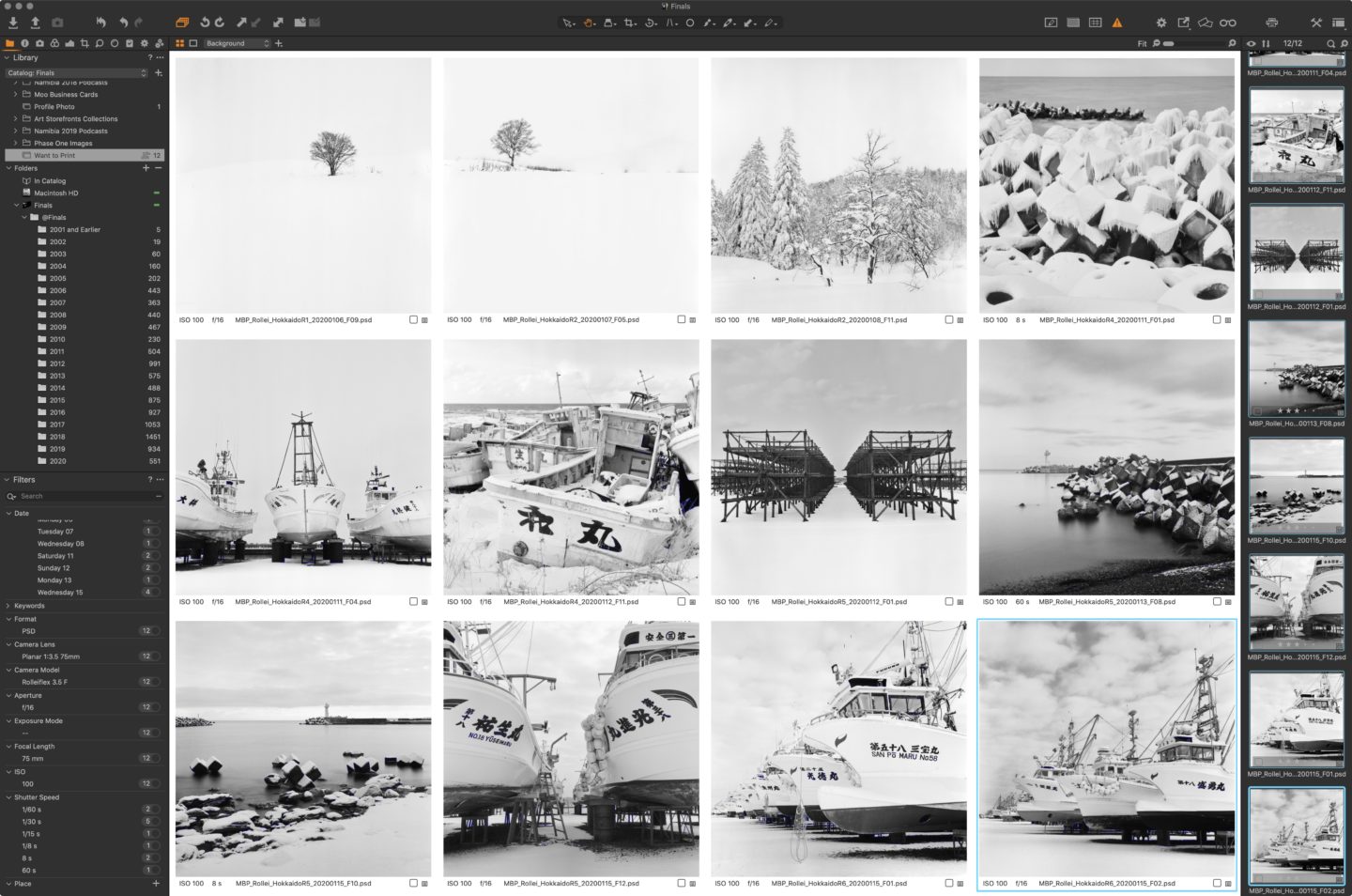 My Finals drive also travels everywhere with me, but that is where I store everything that I feel is worth showing people, and images that I will actively use going forward. From this year’s trips, I ended up with 96 images from my Hokkaido Landscape Tour that I’m really happy with. 77 of them were shot with my EOS R and 19 of them shot with my Rolleiflex medium format twin lens reflex camera. From the first of my Japan Winter Wildlife tours, I came back with 270 images that I am really happy with, and from my second Japan Winter Wildlife tour, I found myself with 179 images. The main reason for the reduction on the second tour was the warm winter affecting the behavior of the sea eagles. Although we did still get some great shots, it wasn’t as productive as the first tour.