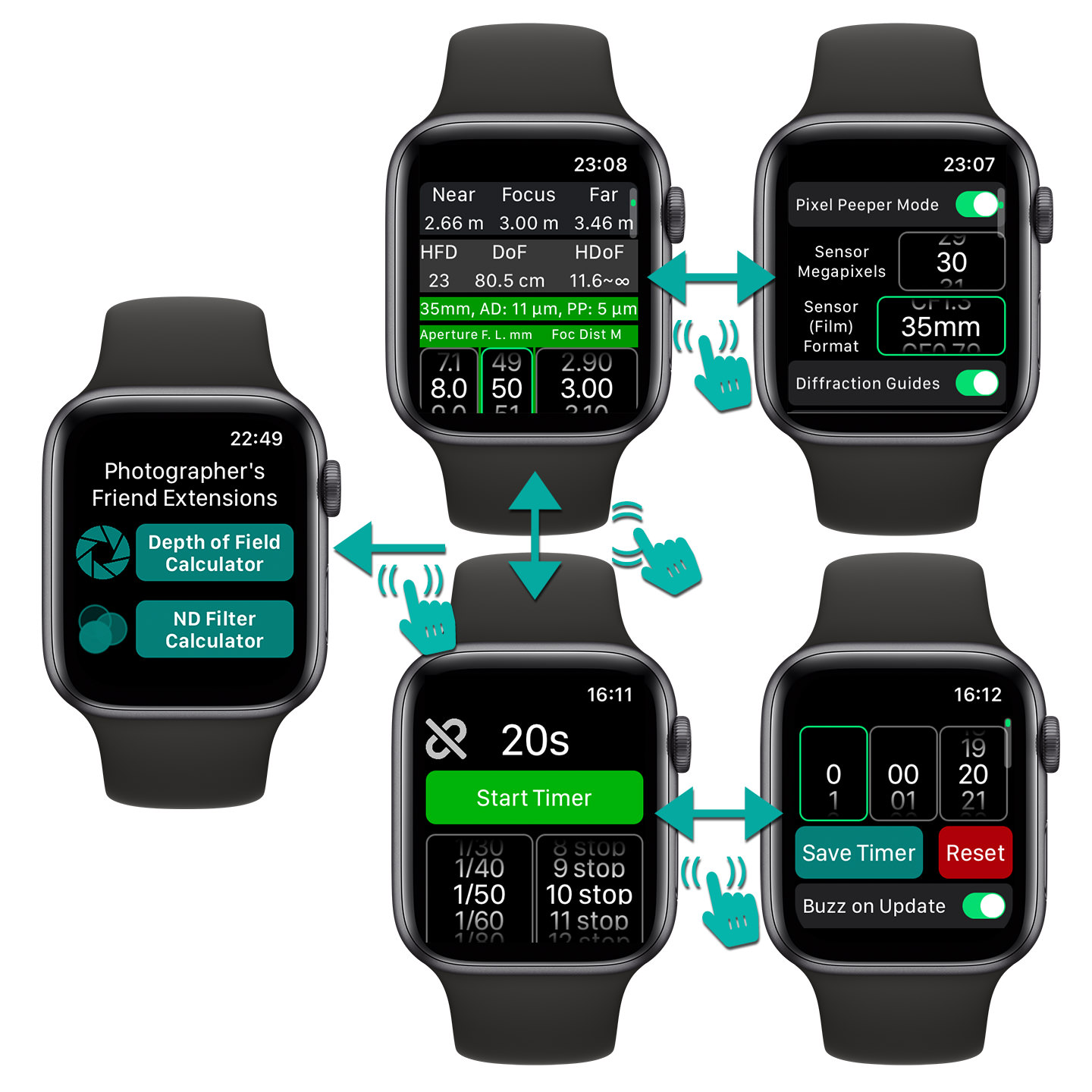 So much work has gone into this though, I couldn’t make it all free, and as a large part of the upgrade is bringing extensions for Apple Watch to the app, it didn’t seem right charging everybody for the upgrade, as not everyone owns an Apple Watch. The Depth of Field Calculator and Neutral Density Filter Calculator now have counterparts for Apple Watch that get installed automatically if your iPhone is paired with a Watch.