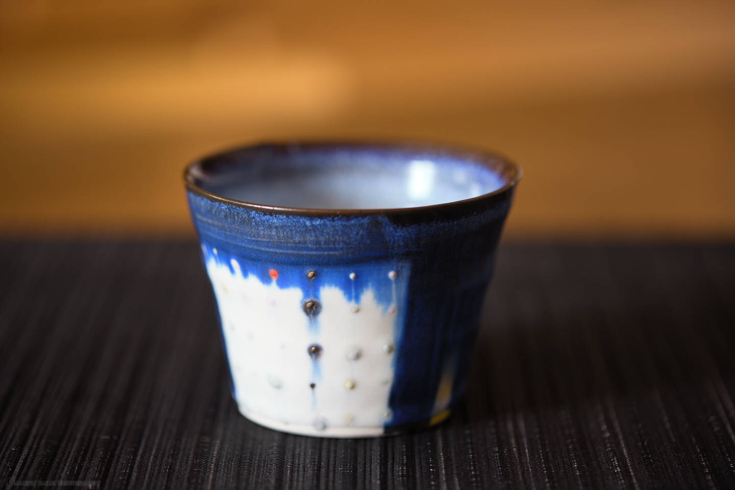 I bought this cup directly from the person that made it at a department store here in Tokyo. I fell in love with this instantly, and although it was a little over $50 I couldn’t prevent myself from buying it. One of the setting points was that single red dot that you see in this photo, but I like the overall design, and when I peered into the cup, I found the white base mesmerizing. I was both surprised and completely not surprised when the person that made it told me that his kiln was Taisetsugama, right by the Taisetsu mountain range in Hokkaido.