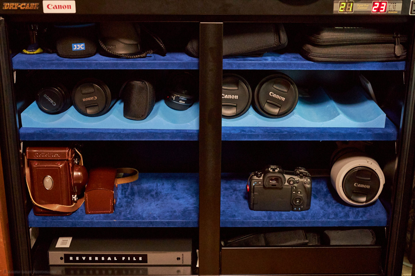 Martin – I made one business trip to Japan before I retired. I was struck by how humid it was. In hindsight I now understand why so much of the used gear from Japan has fungus problems. Does you new cabinet have provisions for bolting it to the floor? At one time i considered buying a gun safe for my camera gear. They all have provisions for bolting them to the floor. It would have been great for theft protection. I gave the idea up because of the weight. Humidity controlled ones are available and quite expensive.