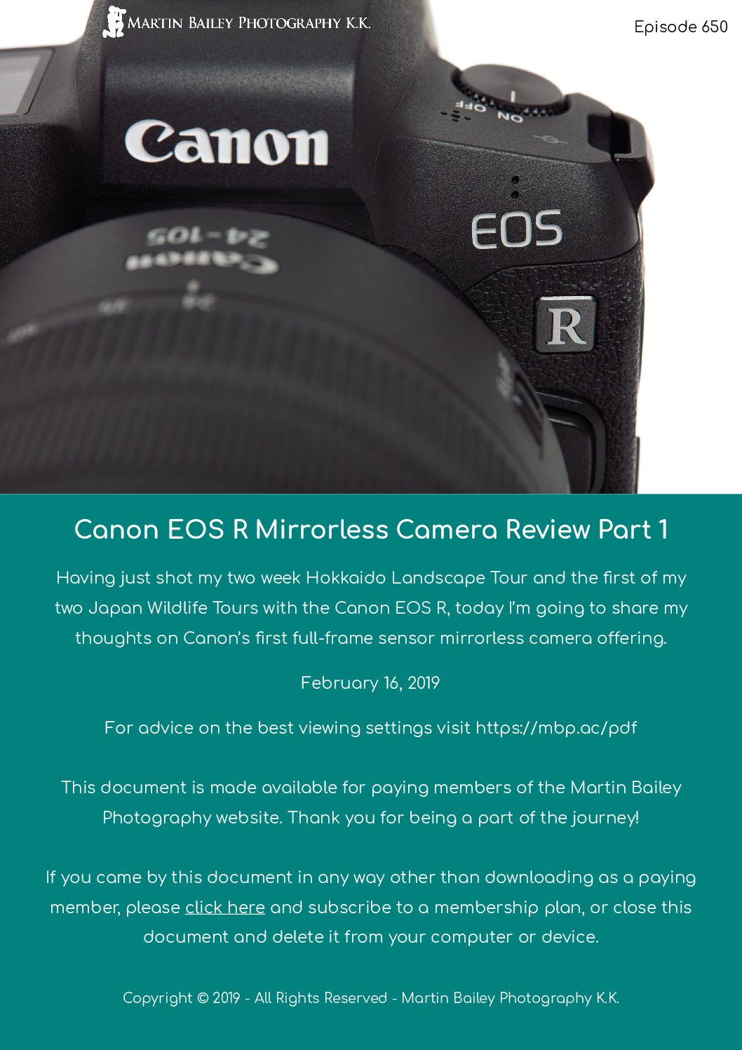 650 – Canon EOS R Mirrorless Camera Review Part 1 by Martin Bailey | Feb 16, 2019 | 0 comments 650 – Canon EOS R Mirrorless Camera Review Part 1 Submit a Comment Cancel replyYour email address will not be published. Required fields are marked *Comment * Name * Email * Website Δ This site uses Akismet to reduce spam. Learn how your comment data is processed.