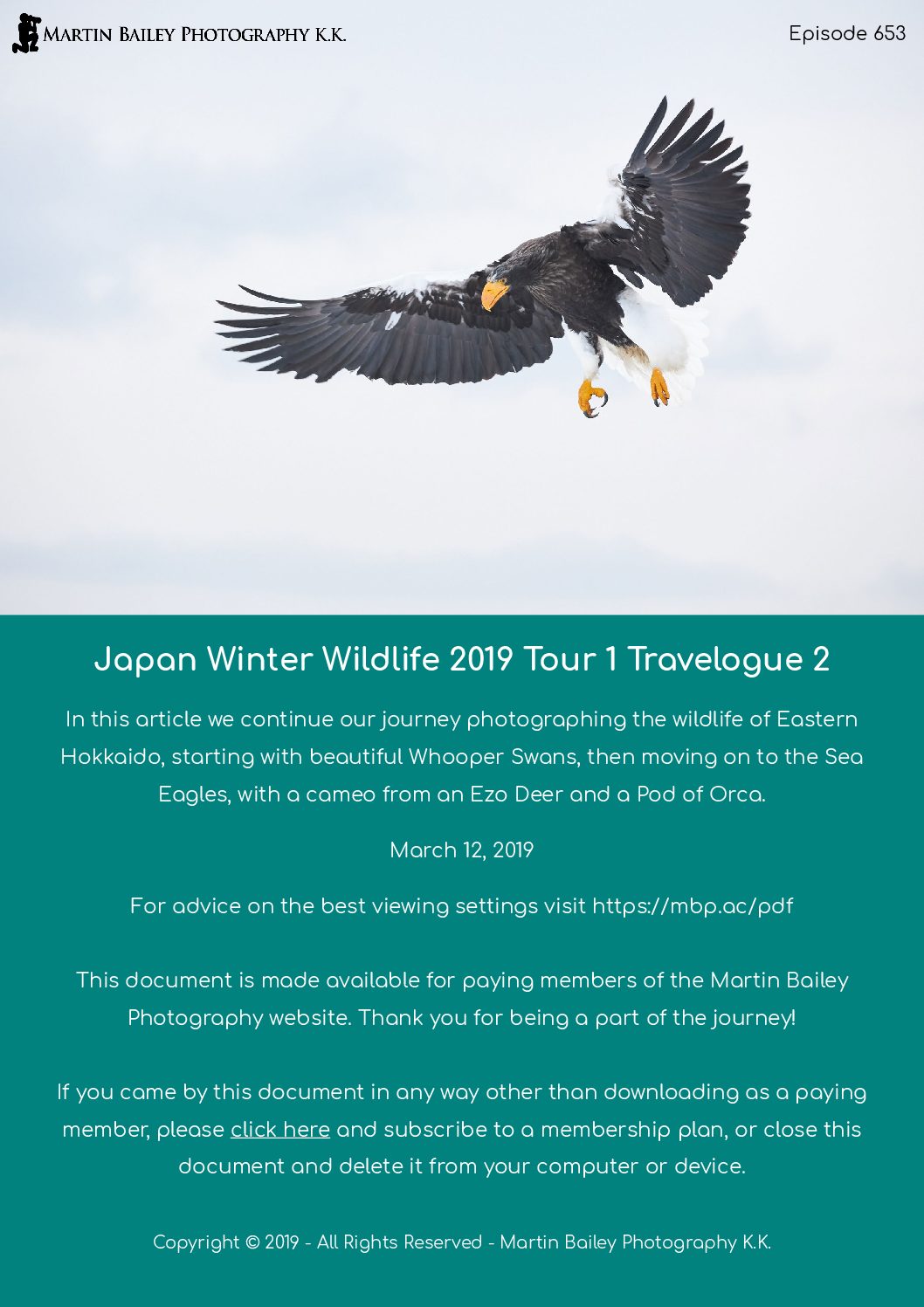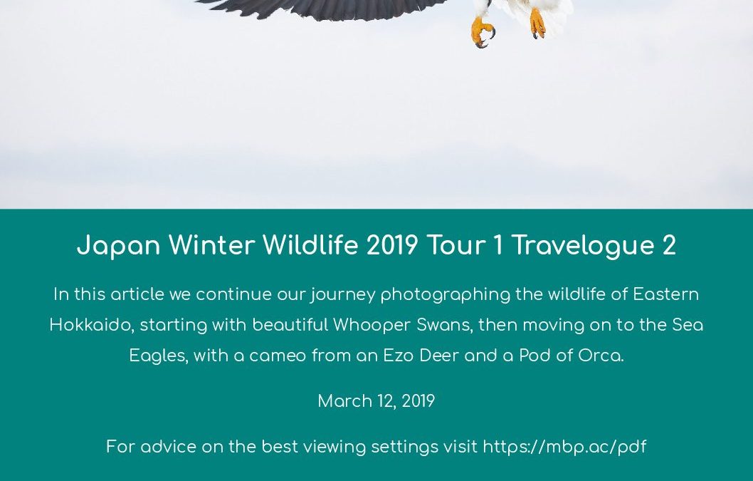 653 – Japan Winter Wildlife 2019 Tour 1 Travelogue 2 by Martin Bailey | Mar 12, 2019 | 0 comments 653 – Japan Winter Wildlife 2019 Tour 1 Travelogue 2 Submit a Comment Cancel replyYour email address will not be published. Required fields are marked *Comment * Name * Email * Website Δ This site uses Akismet to reduce spam. Learn how your comment data is processed.