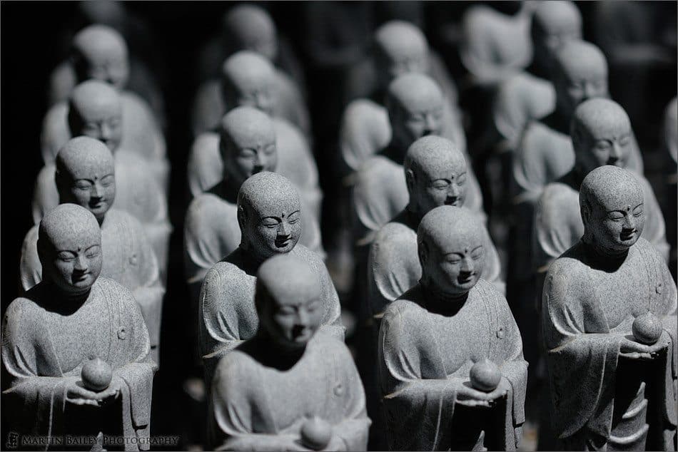 Also, crouch or lay down low, or climb up onto a raised area and look at things from a different perspective, you may find the world looks much different from 50 centimeters from the ground. To finish, take a look at photo number 625. I call this shot “Benevolent Smiles” and it was made possible by kneeling on the gravel of a Buddhist temple and using an angle finder, as these guys are only about 20 centimeters tall.