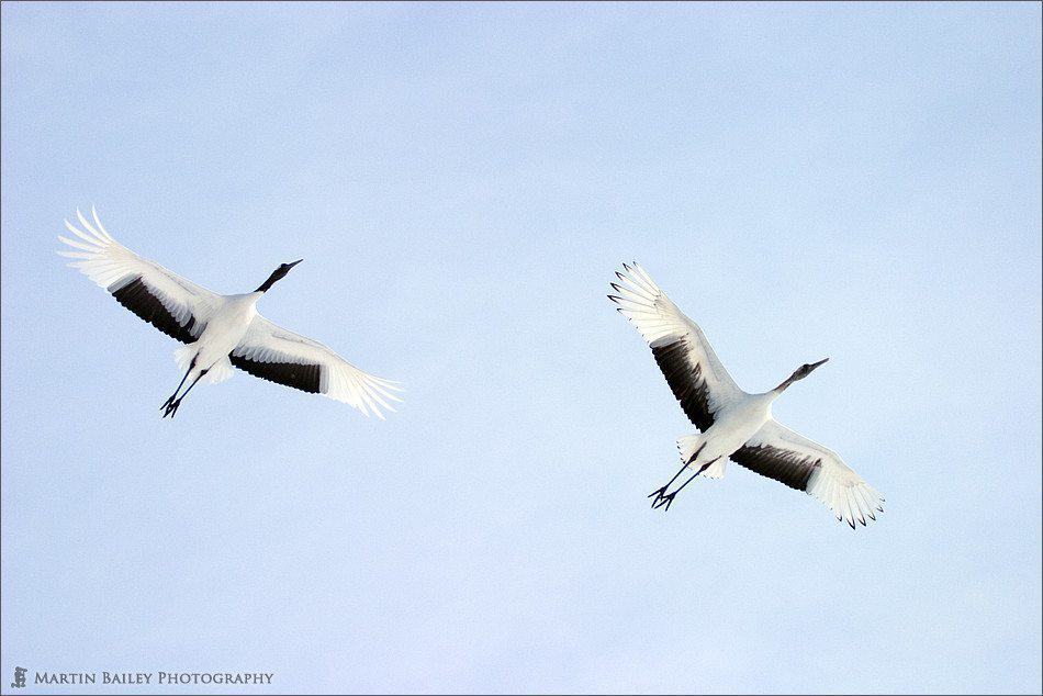 Let’s take a look at the first photo on today’s Podcast. This is number 287, which was shot at F5.6 at 1/800 of a second. You can view the photos in iTunes or on my Podcast page which is linked to the top page of martinbaileyphotography.com. You’ll see a number of Japanese Red-Crowned Cranes on a field of snow and a dark forest in the background. I had l metered from the snow which although I don’t recall exactly, was probably giving me a reading of around 1/2500 of a second at F5.6. The camera was remember trying to give me a nice medium gray coloured snow, so this was far too fast a shutter speed. It was a hazy sunshine on that day, not full sunlight, so I didn’t need to compensate by a two full stops. To find the correct exposure, I first took a shot of the snow, with nothing else in the frame, then compensated by adding around 1 and 2/3 of a stop.