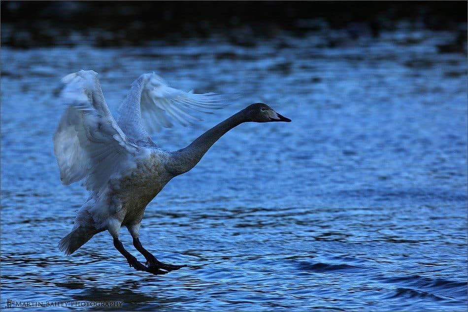 So, moving on, the second thing you’ll need to bear in mind when using a telephoto lens is that the depth-of-field gets shallower and shallower as the focal length gets longer. I shot the image that I just introduced of the swan coming in to land at F8. I could have possibly gone to F5.6, but at the distance I shot this at, which was probably about 20 meters or 65 feet, I’d have ended up with a depth-of-field of just 40cms or 12 inches, and with a bird this size, that would have meant that the wings were quite out of focus. Even at the aperture I chose, F8, I only have 57cms or just over 18 inches of DOF, but this is just about enough to get most of the bird in acceptable focus.