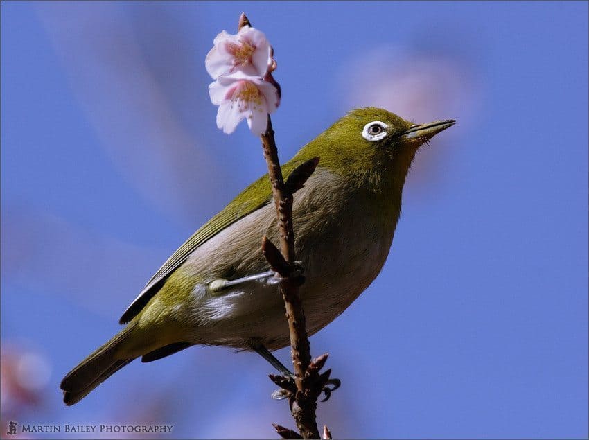Let’s take a look at one more example of an image shot again with the 100-400mm lens, but this time with a 2 times extender. Take a look at shot number 575 of a Japanese White Eye bird. This is actually not a great example of the multiplication of the focal length, as I was actually using a focal length shorter than the last example shot, because I shot this before I bought the 1.4 times extender. It was shot at 520mm, which was actually 260mm with the 2 times extender. This was also shot with the 20D, so the effective focal length with the crop factor is 830mm. A quick reminder, but if you look below the shots in the gallery you can see all the camera settings, and you can see that for this shot the aperture is set to F11. This time too the lenses aperture was set at F5.6, but the 2 times extender forced an aperture of F11, which is two stop smaller than F5.6.
