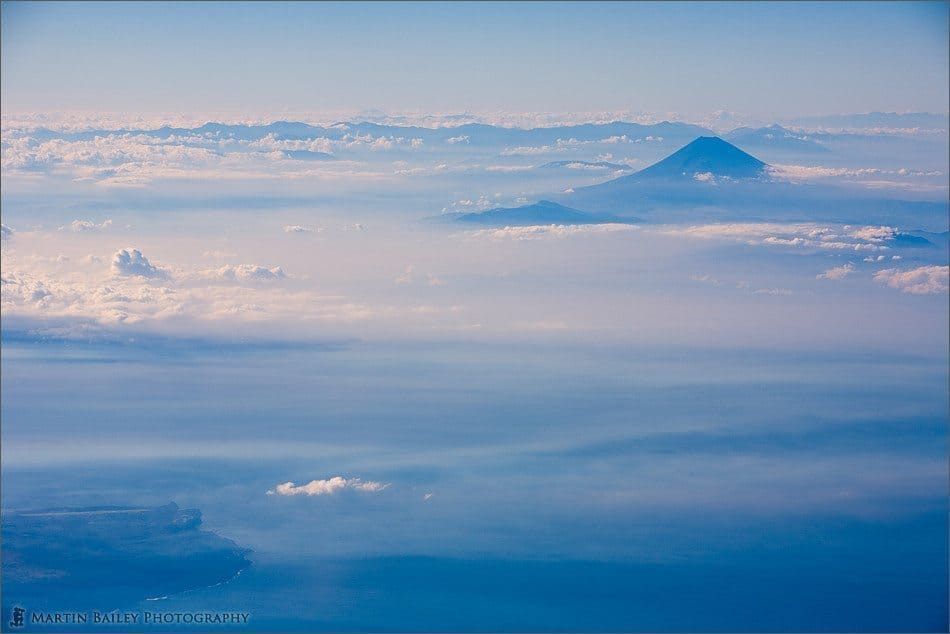 I actually uploaded another shot with a small island called Toshima in the foreground, and in its entirety, which is pretty cool, but we won’t look at that today. If you are interested please do stop by martinbaileyphotography.com and take a look. The last shot I want to look at today though, is number 1549. This is literally just minutes before we touched down. The request to turn off all electronic devices had just been announced, and the landing gear had bumped and banged its way down, and I’d actually put my camera into my camera bag at my feet, when I saw this river coming towards us. I could not resist getting my camera back out in case this came to something, and indeed, the sun being just at the right place in the sky lit the river up in a beautiful golden orange colour, and this lined up perfectly with Mount Fuji in the background and the clouds and sun’s rays hitting the misty area below the clouds really work for me.