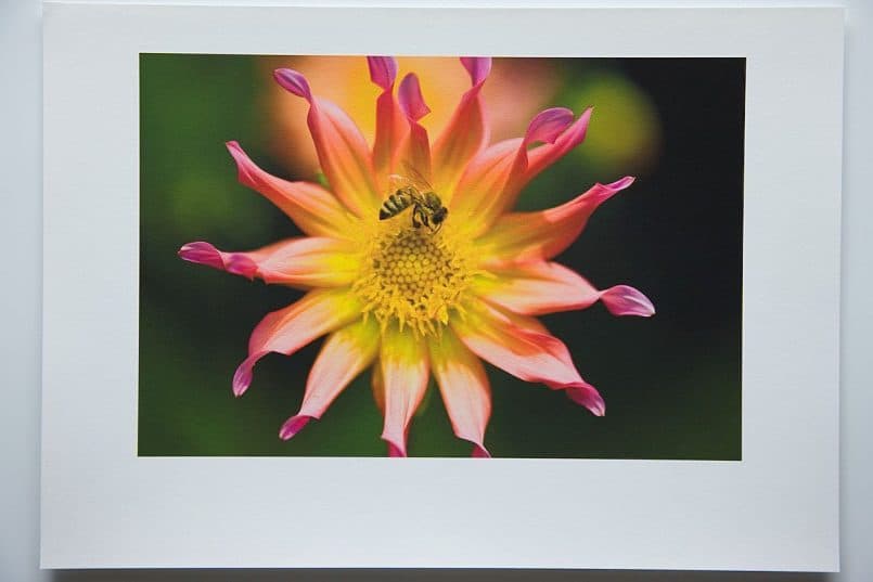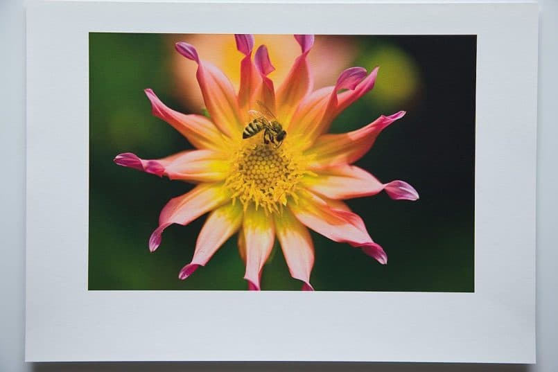 We can see in Print #3c though (bel0w), for which I used Photo Rag with the Hahnemuhle Photo Rag profile, and the rendering intent set to Perceptual, that we have the most dynamic range of all three prints, and the bokeh, especially that ball behind the top right of the flower, seems to spread out a little more. Overall, this is my favourite of the three prints, and a close inspection with a loupe tell me that it is as sharp as when using the canon profiles and the paper set to Fine Art paper in the printer driver. Remember that when I’m using the Hahnemuhle papers, I am trying with the paper set to Matte Photo Paper, so that I can remove the 35mm border restriction.