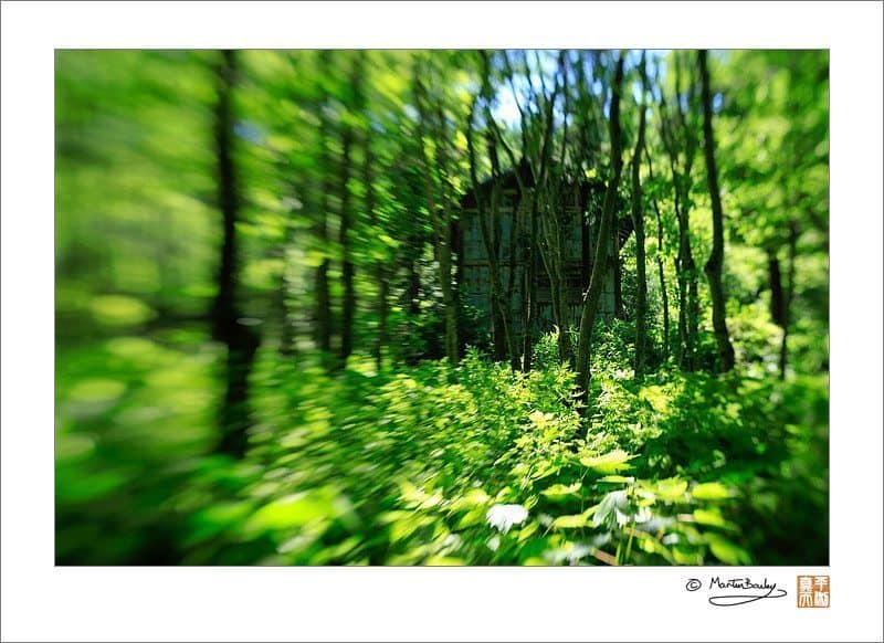 Let’s move on now to some other example images that I’ve been capturing since getting my Lensbaby. Next up is image number 2297 (below), that I shot in a small town way up north called Joboji. I took a drive up a country road that I found on my last visit, and noticed this abandoned shack in the woods. Now I have to admit, I am still sometimes turning to the Lensbaby as a means to an end, rather than it being my first choice. I have to really embed it in my work-flow before I can truly work with this lens. Here though, there was a thick black power cable running across the top of the scene. You can just about see it in the blur, running from the top right corner, down past the top of the shack just before the blue of the sky starts, then down to about a third of the way into the image from the top as it makes its way to the left of the frame.