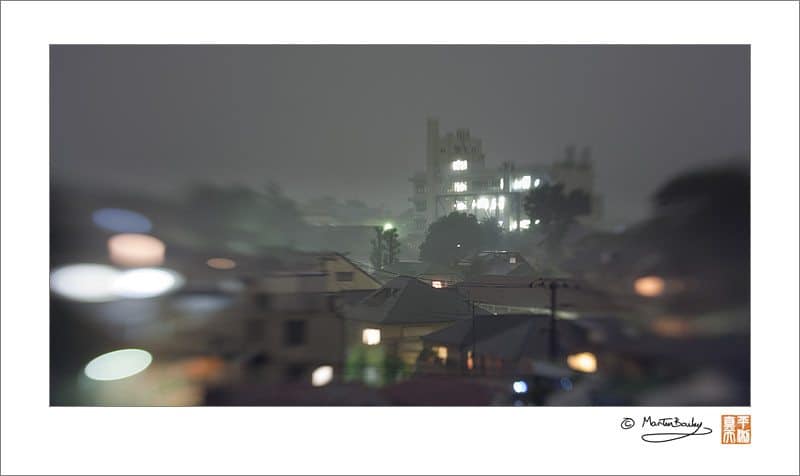 I couldn’t wait to try the Composer out to see just how sharp it was with the new double glass elements, so I grabbed my tripod on that first evening and headed out into a thunder storm to give it a try. The following two images were the results of this tiny excursion into the elements in Tokyo. The first image is number 2287, of the roof tops in the storm. This was taken with the F4 aperture ring installed. Here I lined up the sweet spot, which is where the lens is sharp, with the building on the horizon. I used an ISO of 50 for an 8 second exposure, and the clouds are nicely lit because of the lightening that struck while the shutter was open.