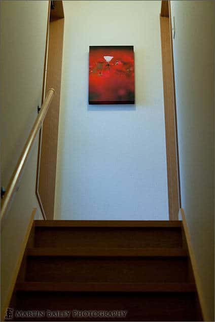 And here’s the second wrap, that I created during the video, hanging at the top of the stairs, outside my studio door.