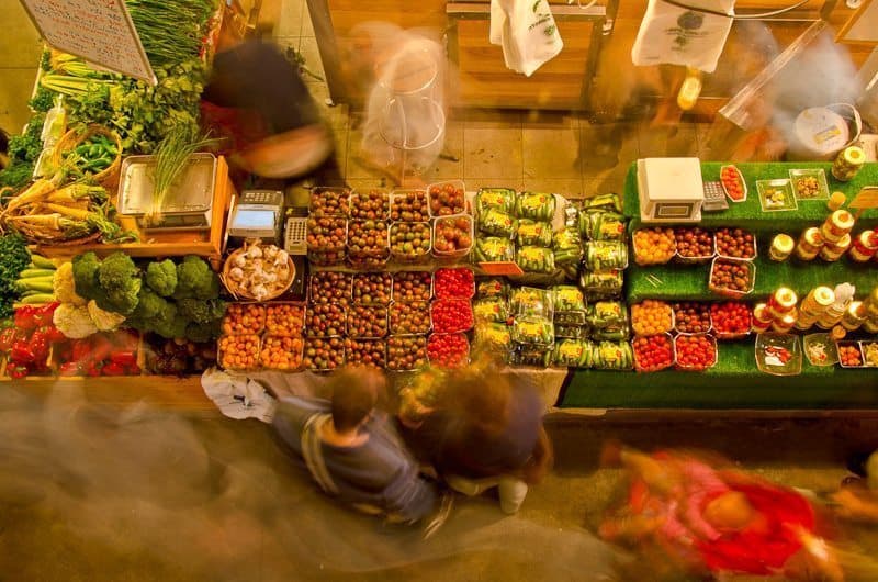 It was a great morning for photography and the market offered many subjects to photograph. After covering the little booths, the merchants and the produce I searched for a view that shows the entire market atmosphere. I have to give credit here to a fellow photographer who joined me that morning on a last minute decision and she spotted this restaurant overlooking the roofed market. We set ourselves and our tripods there and the combination of the limited light and the desire to capture motion, lent itself nicely to slow-exposure. I put on the darkest ND filter I had to not over-expose the lit areas while shooting slow enough to get the moving crowd.