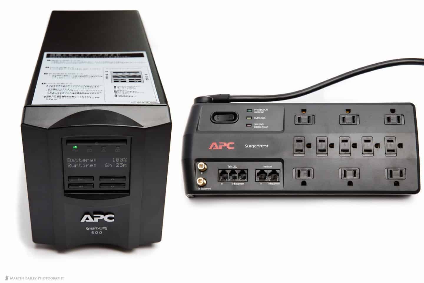 Along with my photography business, I also own a computer company. Where I live in northern Maine we have very rough power. It gets knocked out frequently with thunderstorms in the summer and power lines getting pulled down by trees in the winter. The utility company is usually pretty good at getting the power back up within 4hrs or so, but there have been some ice storms where it is down for weeks for some people in remote areas, so a lot of us have generator backup–either expensive automated solutions that kick in automatically or smaller portable/manual solutions where we just plug in what we need to charge it. We have a natural spring for drinking water year round and a propane stove to cook with, so the fridge and coal stove in the winter are really the only critical appliances. At any rate, I say all that to give you a huge thumbs up on the two APC devices you recommended. I have sold hundreds of the USA version of those exact same surge protector and UPS models and there is nothing better on the market that is as reliable–even for twice the price–from my own experience. I have had a few of the surge protectors get destroyed from direct lightning strikes, but never any gear sitting behind them, and APC replaced the surge protectors at no cost. Plenty of appliances sitting behind competitors’ products were damaged and some of those brands would not come through at all on their stated guarantees.