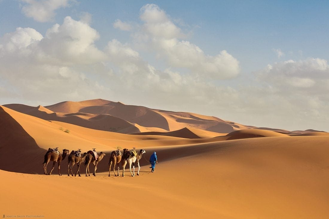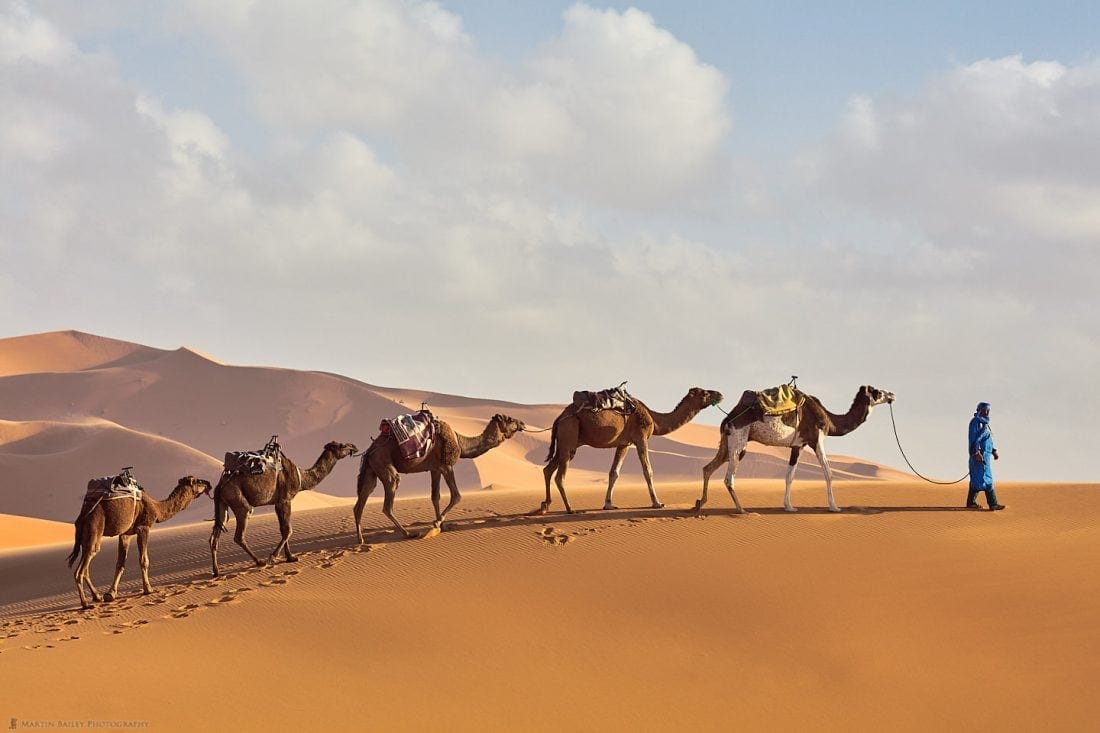 This next photograph is just moments later, as the camel handler reached the top of the sand dune that I’d asked him to walk up. We had to call out to get him to walk a bit faster because the camels were starting to bunch up, and it looks much better if you can get a little bit of separation between the camels, like this.