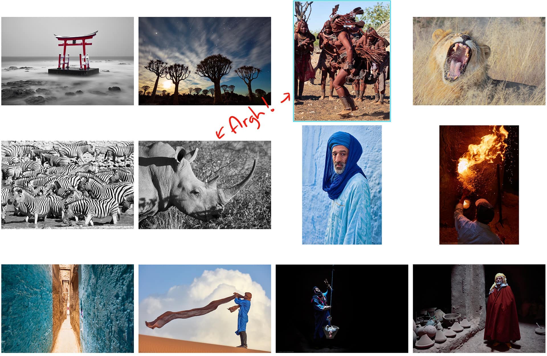 Having said that, we don’t agree on everything. Although her preferences are very much included in my final selection, she felt very strongly that I should include the shot of the dancing Himba because of the dynamism, and because it’s different from the work I often do. She also felt that I should remove the photos of the man in the well and the man in the adobe building from Morocco because I had these same two people in my top ten from last year.